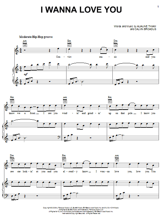 Download or print Akon featuring Snoop Dogg I Wanna Love You sheet music, chords and digital score arranged for Piano, Vocal & Guitar Chords (Right-Hand Melody). This Hip-Hop score includes 9 page(s).
