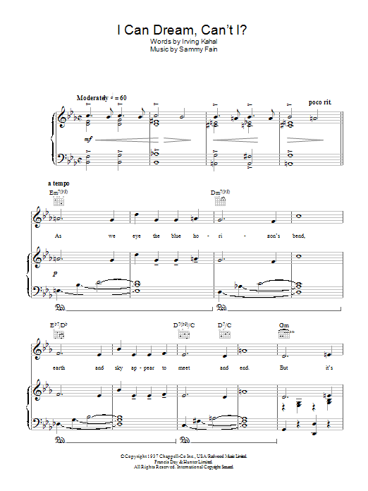 Download or print Al Bowlly I Can Dream, Can't I? (from Right This Way) sheet music, chords and digital score arranged for Piano, Vocal & Guitar Chords. This Standards score includes 4 page(s).