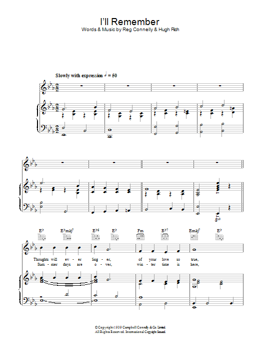 Download or print Al Bowlly I'll Remember sheet music, chords and digital score arranged for Piano, Vocal & Guitar Chords. This Standards score includes 4 page(s).