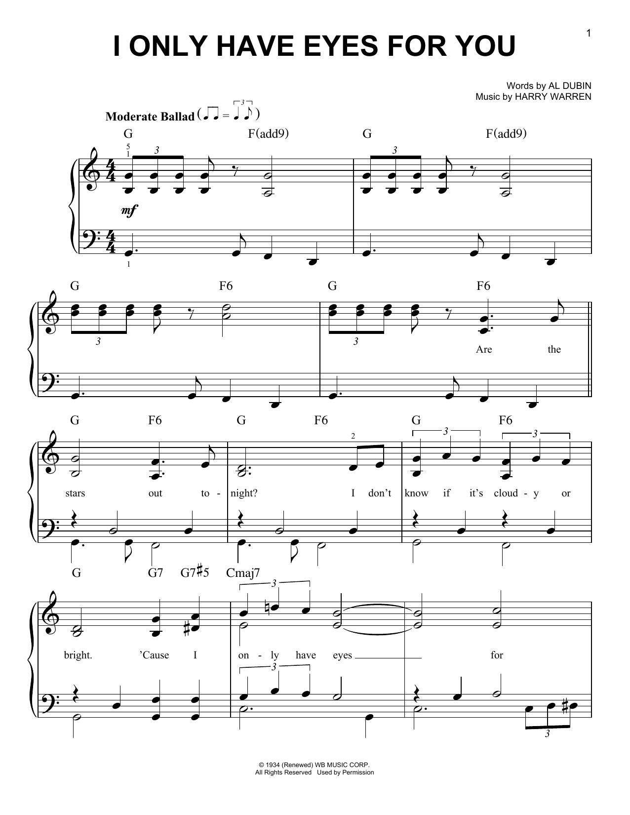 Download or print Al Dubin I Only Have Eyes For You sheet music, chords and digital score arranged for Easy Piano. This Love score includes 4 page(s).