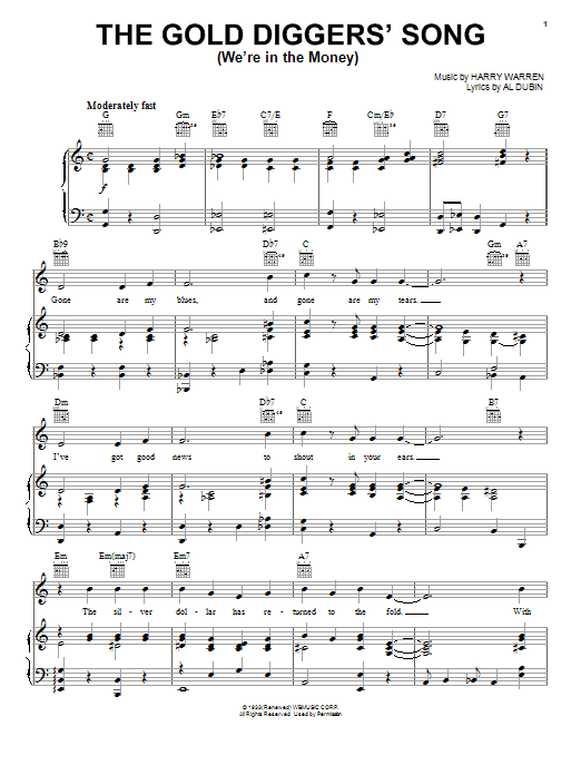 Download or print Al Dubin The Gold Diggers' Song sheet music, chords and digital score arranged for Piano, Vocal & Guitar Chords (Right-Hand Melody). This Standards score includes 3 page(s).
