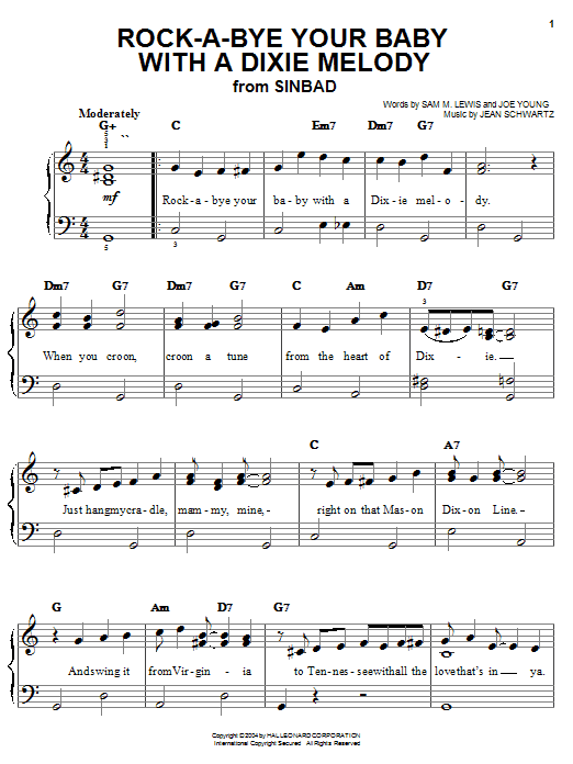 Download or print Al Jolson Rock-A-Bye Your Baby With A Dixie Melody sheet music, chords and digital score arranged for Lead Sheet / Fake Book. This Jazz score includes 1 page(s).