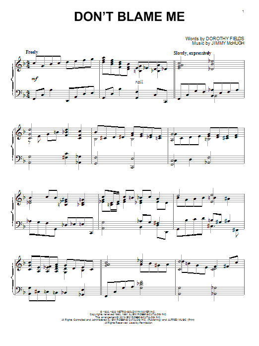 Quick facts Don't Blame Me about digital sheet music