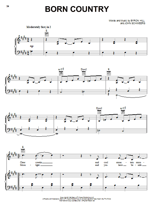 Download or print Alabama Born Country sheet music, chords and digital score arranged for Piano, Vocal & Guitar Chords (Right-Hand Melody). This Country score includes 6 page(s).