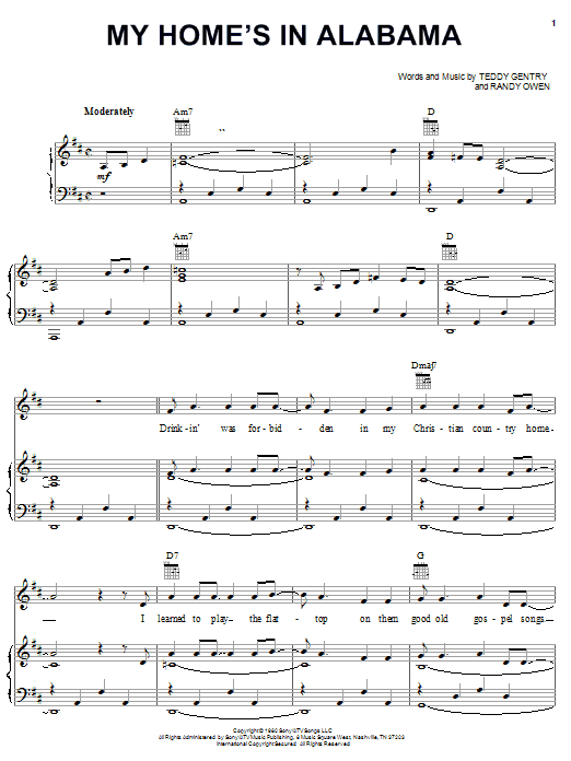 Download or print Alabama My Home's In Alabama sheet music, chords and digital score arranged for Easy Piano. This Country score includes 6 page(s).