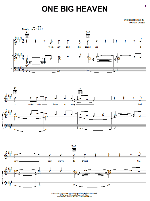 Download or print Alabama One Big Heaven sheet music, chords and digital score arranged for Piano, Vocal & Guitar Chords (Right-Hand Melody). This Christian score includes 10 page(s).