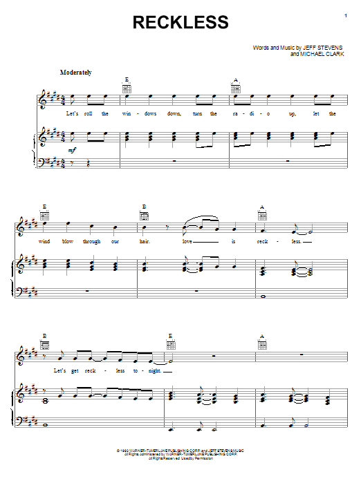 Download or print Alabama Reckless sheet music, chords and digital score arranged for Piano, Vocal & Guitar Chords (Right-Hand Melody). This Country score includes 8 page(s).
