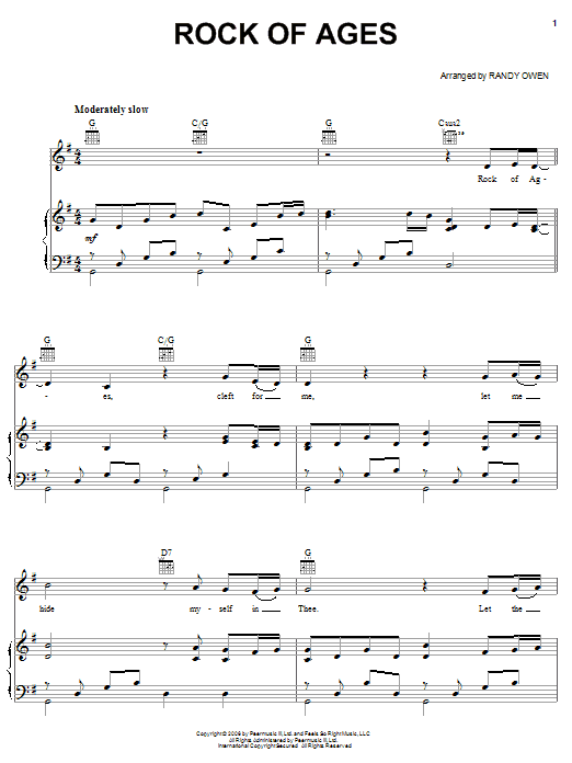 Download or print Alabama Rock Of Ages sheet music, chords and digital score arranged for Piano, Vocal & Guitar Chords (Right-Hand Melody). This Christian score includes 5 page(s).