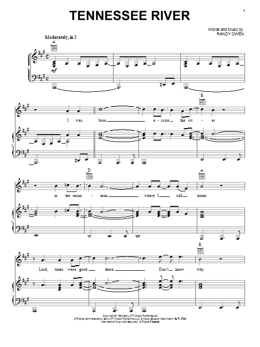 Download or print Alabama Tennessee River sheet music, chords and digital score arranged for Piano, Vocal & Guitar Chords (Right-Hand Melody). This Country score includes 6 page(s).