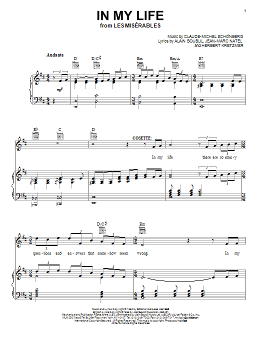Download or print Alain Boublil In My Life sheet music, chords and digital score arranged for Lead Sheet / Fake Book. This Musical/Show score includes 2 page(s).