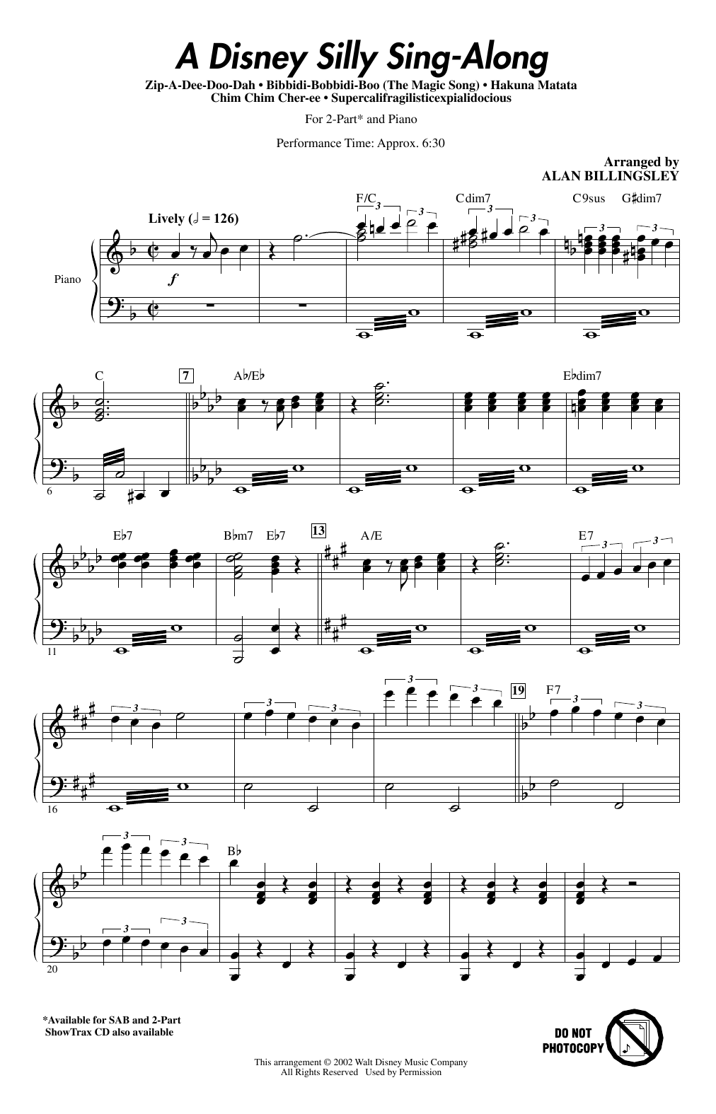 Download or print Alan Billingsley A Disney Silly Sing-Along sheet music, chords and digital score arranged for SAB Choir. This Disney score includes 31 page(s).