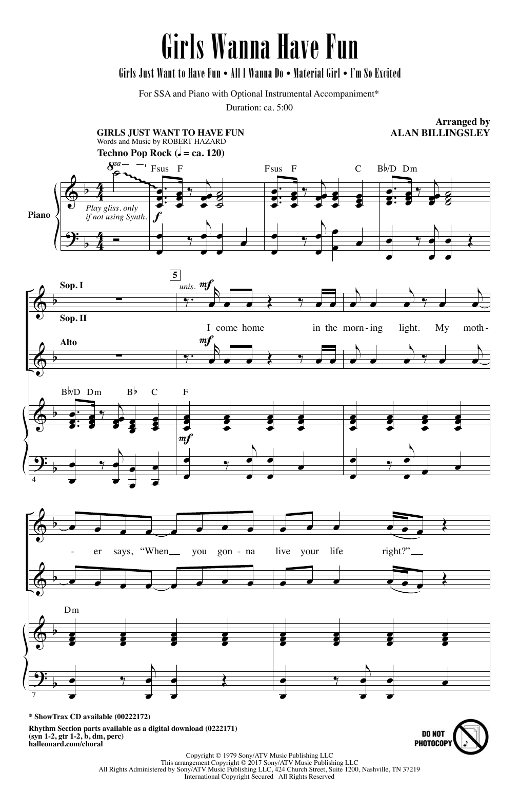 Download or print Alan Billingsley Girls Wanna Have Fun (Medley) sheet music, chords and digital score arranged for SSA Choir. This Pop score includes 23 page(s).