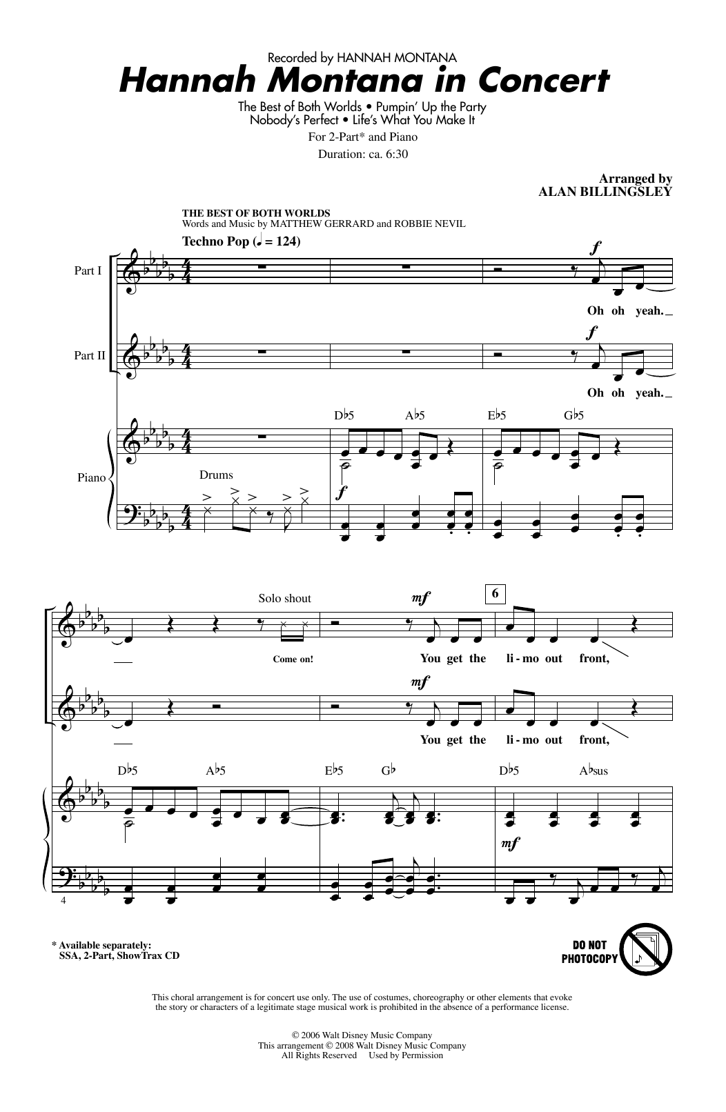 Download or print Alan Billingsley Hannah Montana In Concert sheet music, chords and digital score arranged for SSA Choir. This Disney score includes 26 page(s).