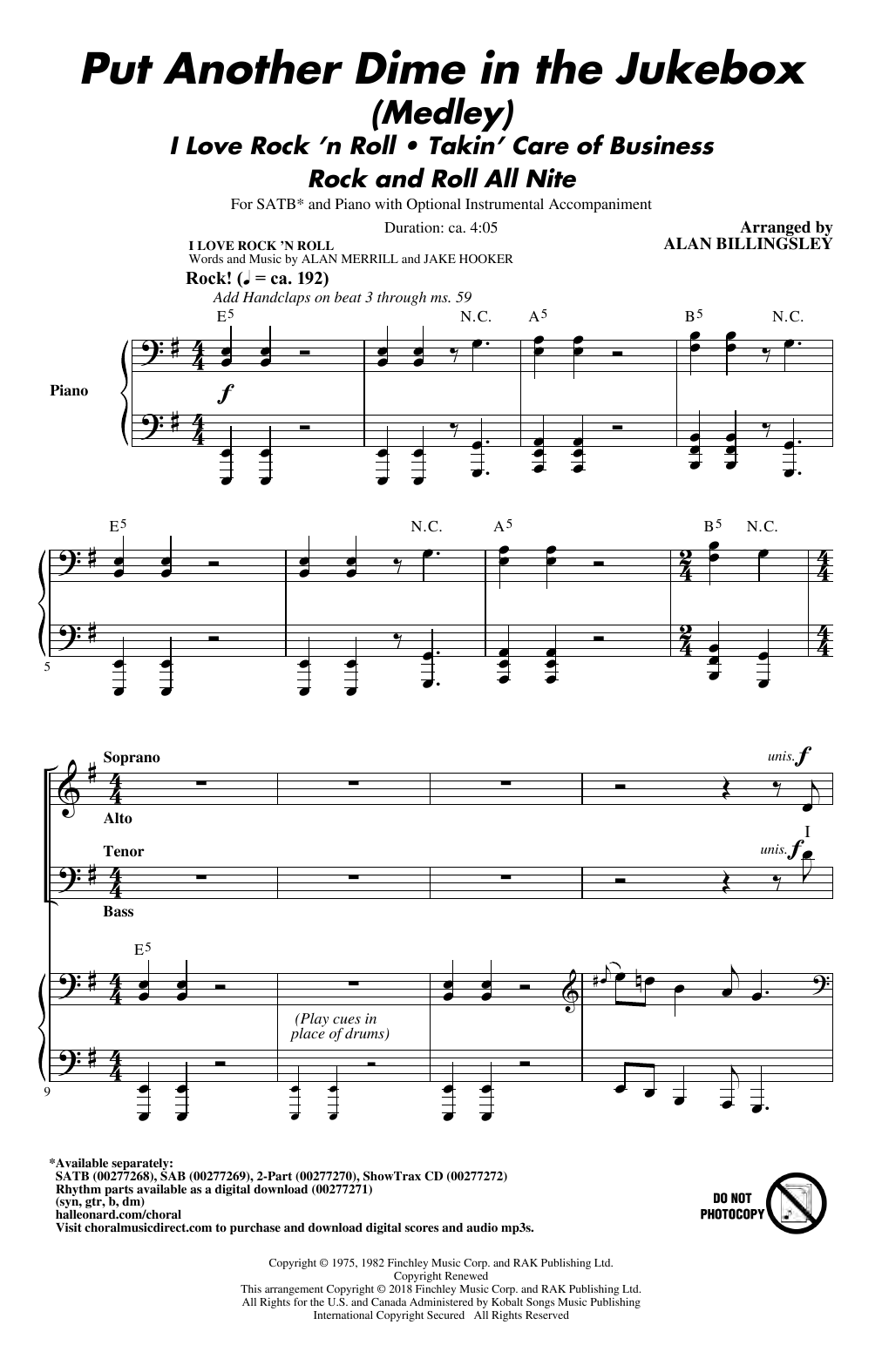 Download or print Alan Billingsley Put Another Dime In The Jukebox (Medley) sheet music, chords and digital score arranged for SAB Choir. This Pop score includes 18 page(s).