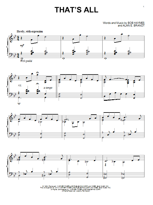 Download or print Alan E. Brandt That's All sheet music, chords and digital score arranged for Piano Solo. This Jazz score includes 5 page(s).
