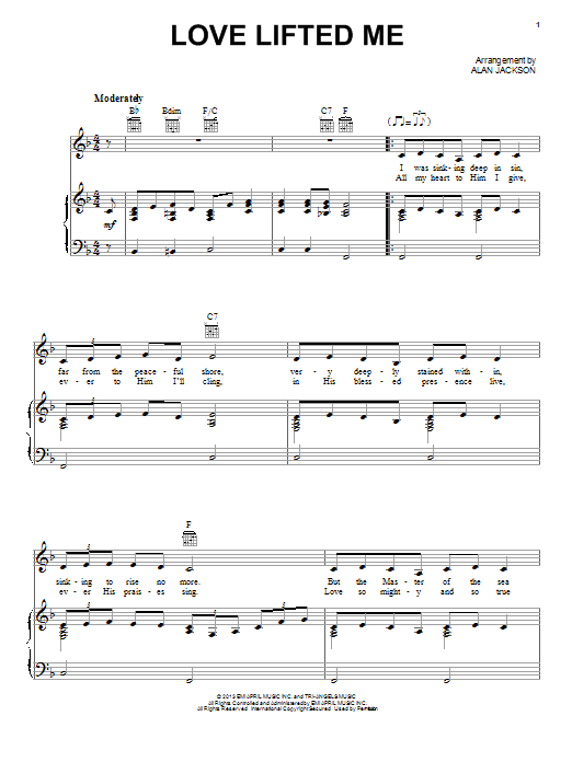 Download or print Alan Jackson Love Lifted Me sheet music, chords and digital score arranged for Piano, Vocal & Guitar Chords (Right-Hand Melody). This Gospel score includes 3 page(s).