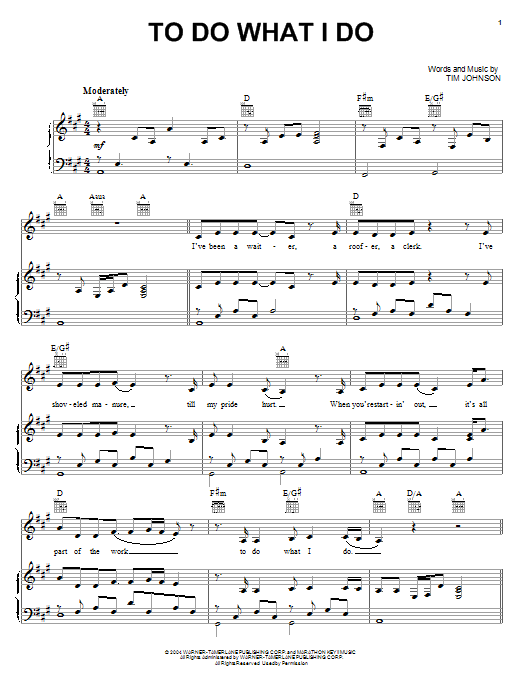 Download or print Alan Jackson To Do What I Do sheet music, chords and digital score arranged for Piano, Vocal & Guitar Chords (Right-Hand Melody). This Country score includes 4 page(s).
