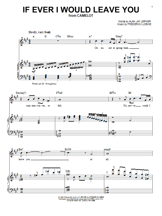 Download or print Alan Jay Lerner If Ever I Would Leave You sheet music, chords and digital score arranged for Piano & Vocal. This Broadway score includes 5 page(s).