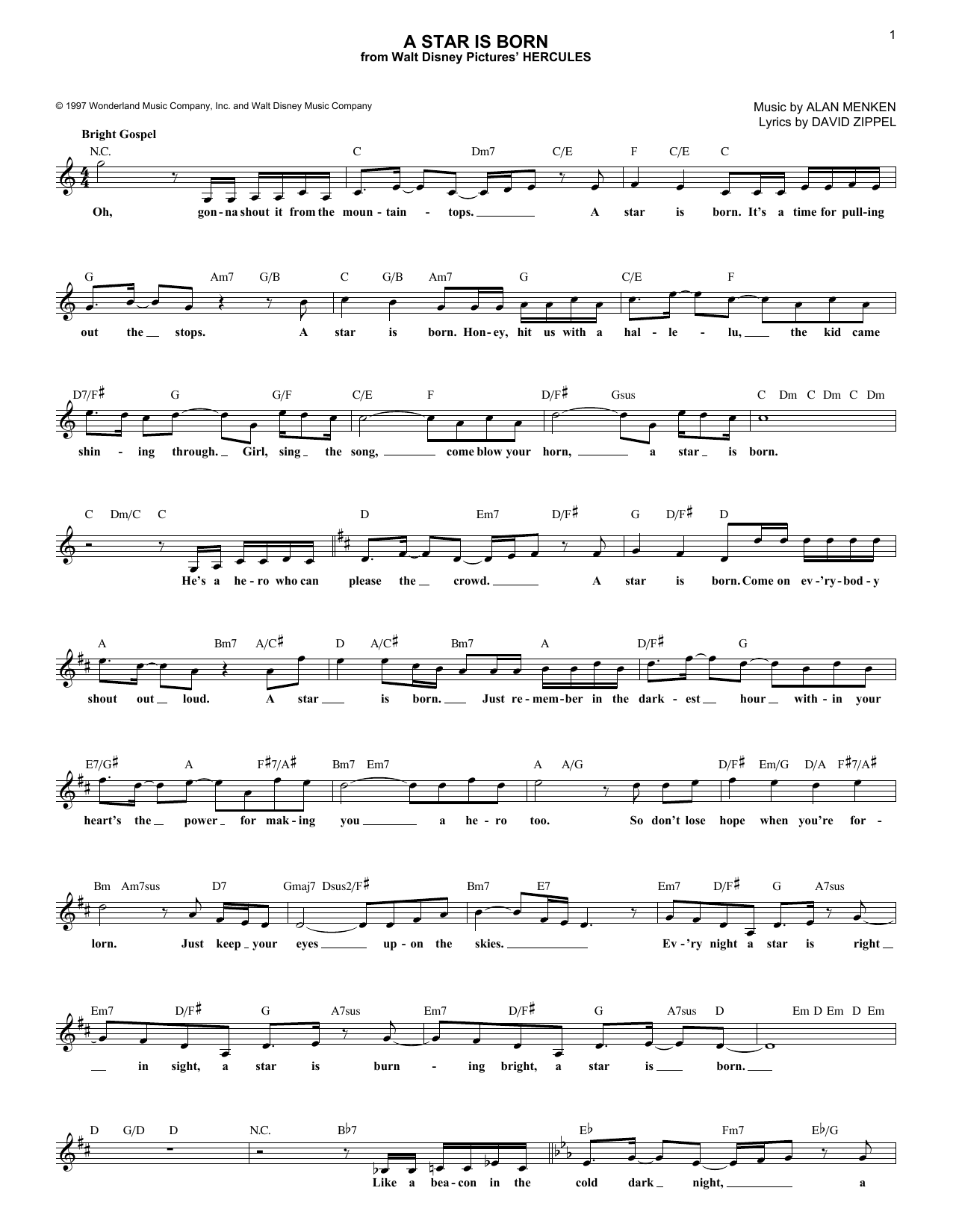 Download or print Alan Menken A Star Is Born sheet music, chords and digital score arranged for Lead Sheet / Fake Book. This Children score includes 2 page(s).