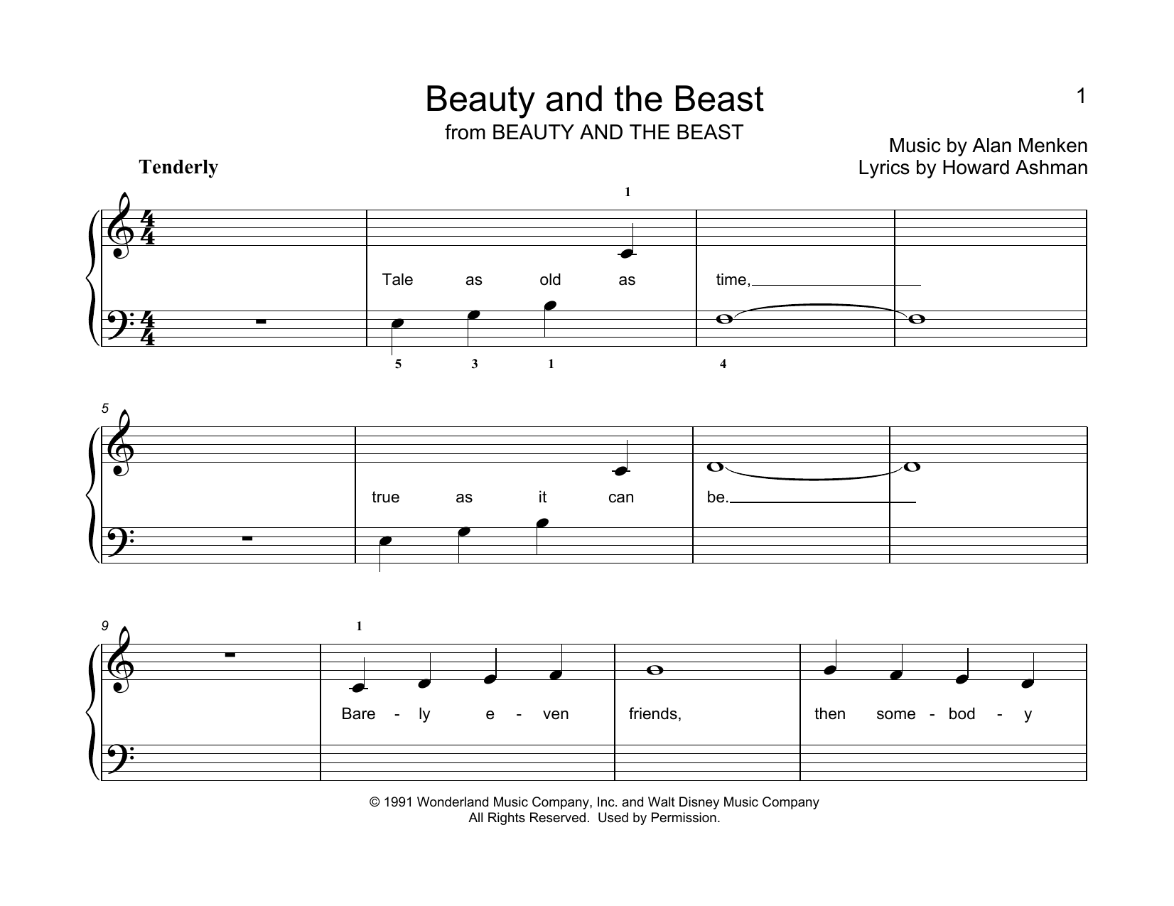 Download or print Alan Menken & Howard Ashman Beauty And The Beast (arr. Christopher Hussey) sheet music, chords and digital score arranged for Educational Piano. This Children score includes 2 page(s).