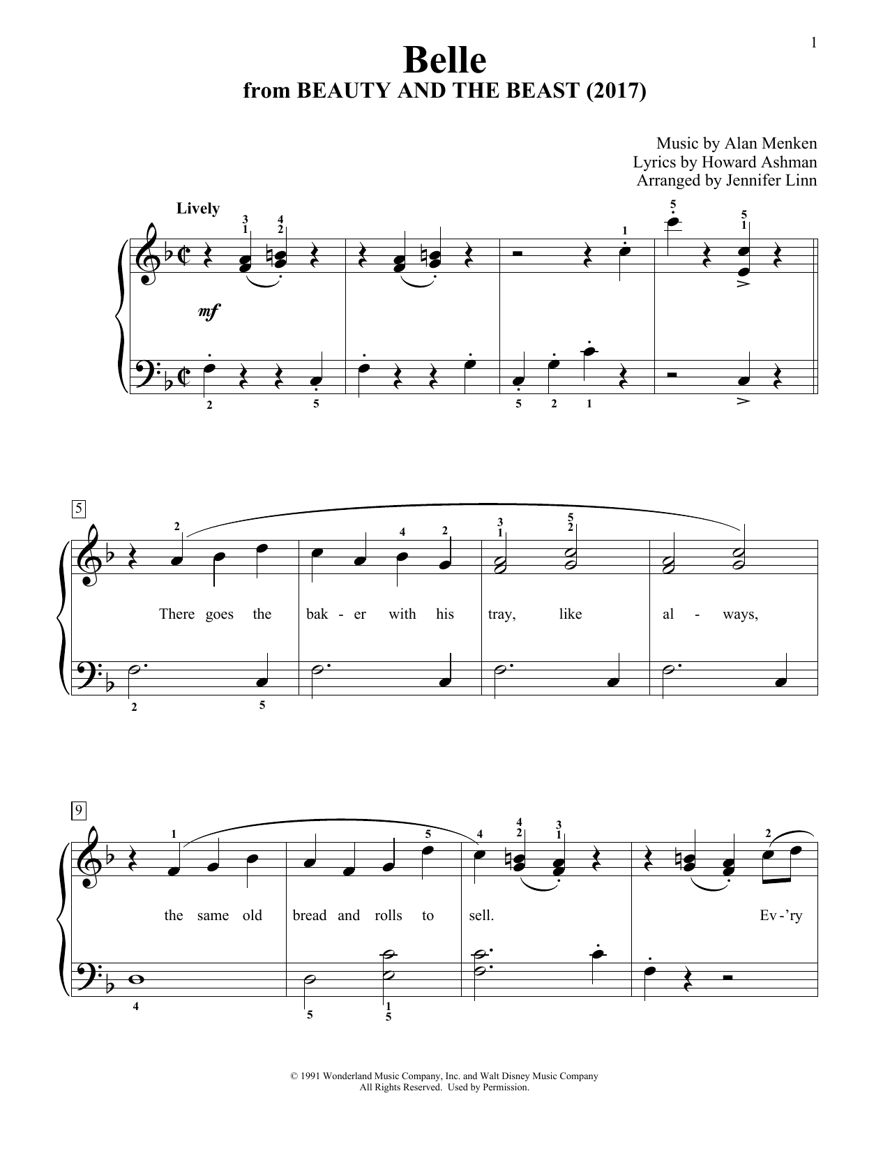 Download or print Alan Menken & Howard Ashman Belle (from Beauty And The Beast) (arr. Jennifer Linn) sheet music, chords and digital score arranged for Educational Piano. This Children score includes 4 page(s).