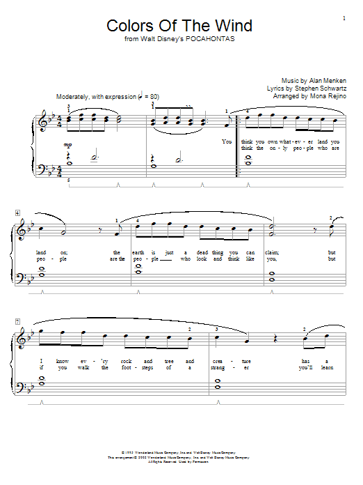 Quick facts Colors Of The Wind (from Pocahontas) (arr. Mona Rejino) about digital sheet music