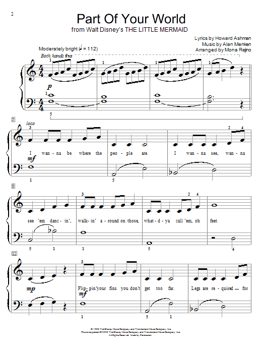 Download or print Alan Menken & Howard Ashman Part Of Your World (from The Little Mermaid) (arr. Mona Rejino) sheet music, chords and digital score arranged for Educational Piano. This Children score includes 2 page(s).