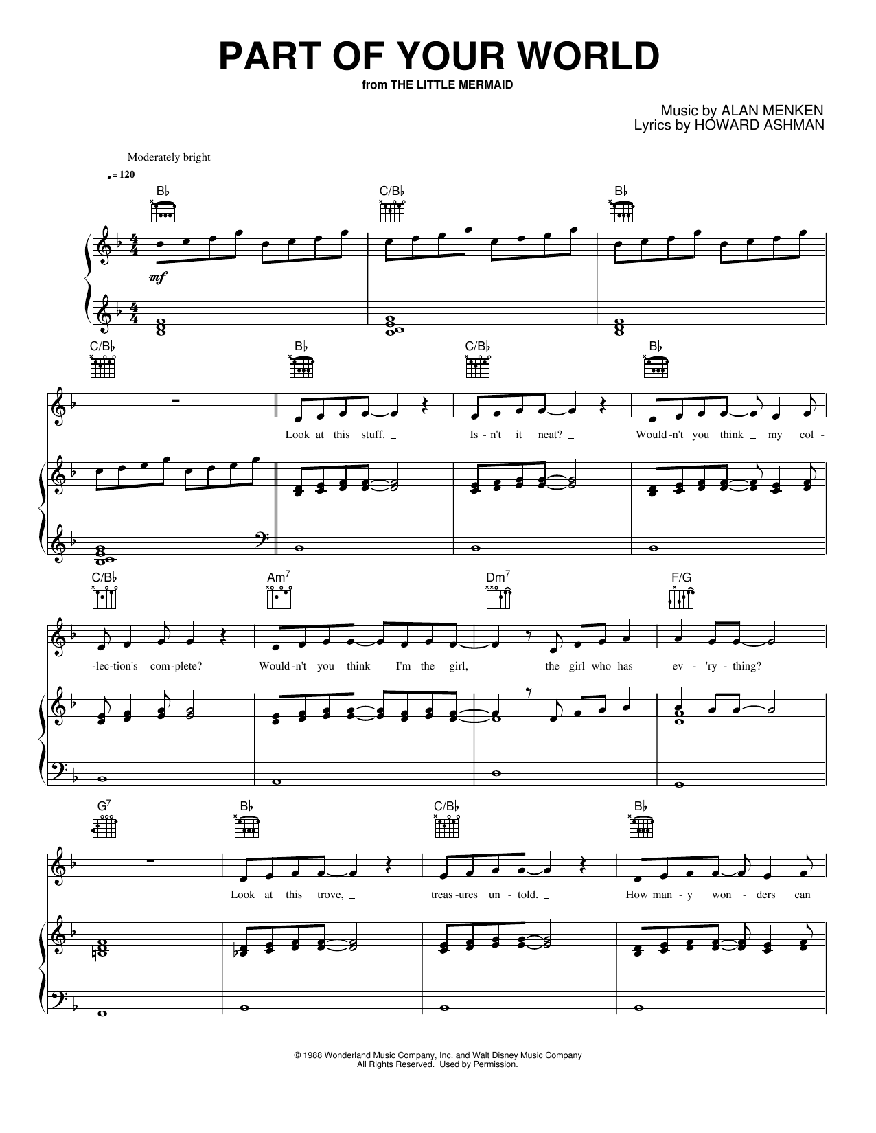 Download or print Alan Menken Part Of Your World sheet music, chords and digital score arranged for Piano, Vocal & Guitar Chords (Right-Hand Melody). This Pop score includes 6 page(s).