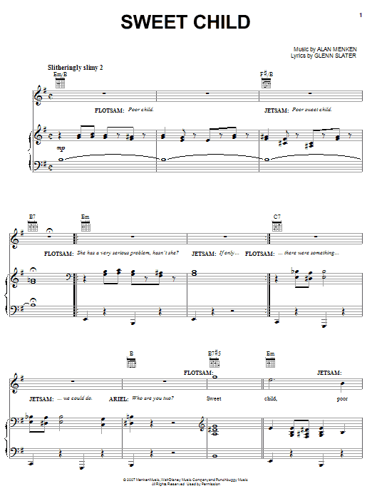 Download or print Alan Menken Sweet Child (from The Little Mermaid: A Broadway Musical) sheet music, chords and digital score arranged for Piano, Vocal & Guitar Chords (Right-Hand Melody). This Children score includes 4 page(s).