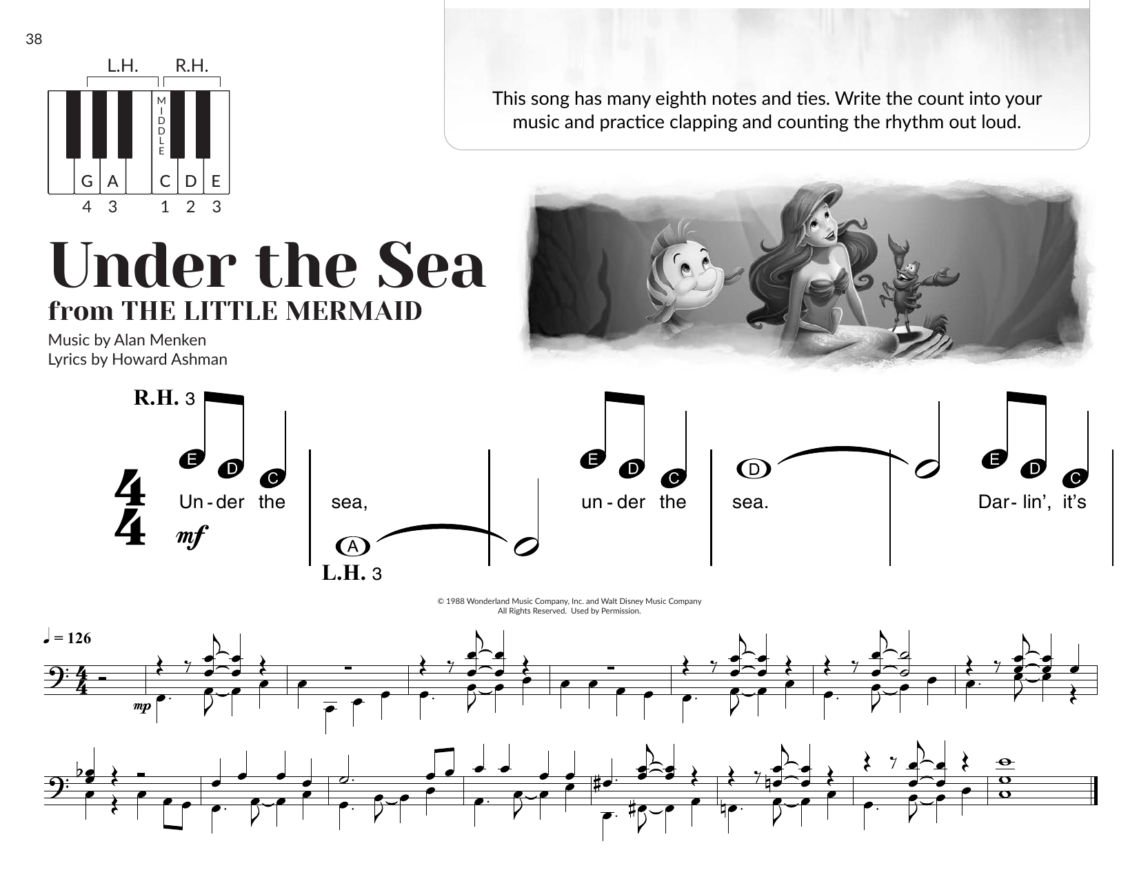 Download or print Alan Menken Under The Sea (from The Little Mermaid) (arr. Brittany McCorriston) sheet music, chords and digital score arranged for Very Beginner Piano. This Children score includes 2 page(s).