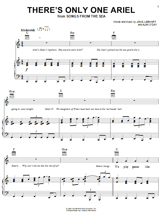 Download or print Alan O'Day There's Only One Ariel sheet music, chords and digital score arranged for Piano, Vocal & Guitar Chords (Right-Hand Melody). This Children score includes 7 page(s).
