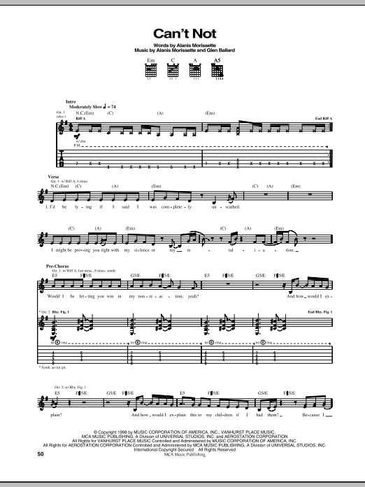 Download or print Alanis Morissette Can't Not sheet music, chords and digital score arranged for Guitar Tab. This Pop score includes 6 page(s).