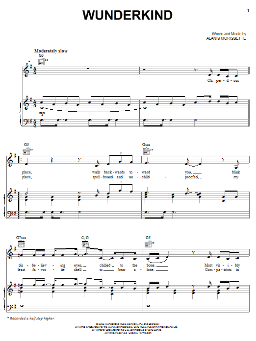 Download or print Alanis Morissette Wunderkind sheet music, chords and digital score arranged for Easy Piano. This Disney score includes 5 page(s).