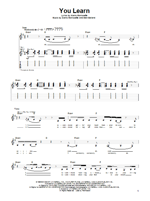 Download or print Alanis Morissette You Learn sheet music, chords and digital score arranged for Easy Lead Sheet / Fake Book. This Pop score includes 2 page(s).