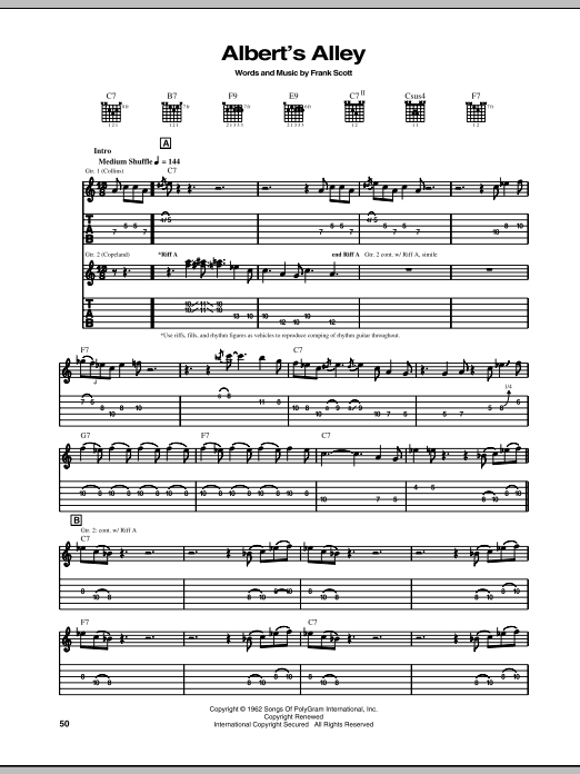 Download or print Albert Collins Albert's Alley sheet music, chords and digital score arranged for Guitar Tab. This Blues score includes 6 page(s).