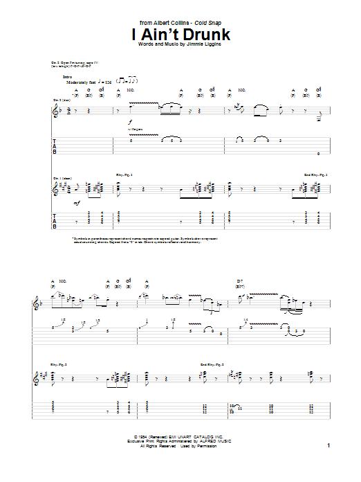 Download or print Albert Collins I Ain't Drunk sheet music, chords and digital score arranged for Guitar Tab. This Blues score includes 12 page(s).