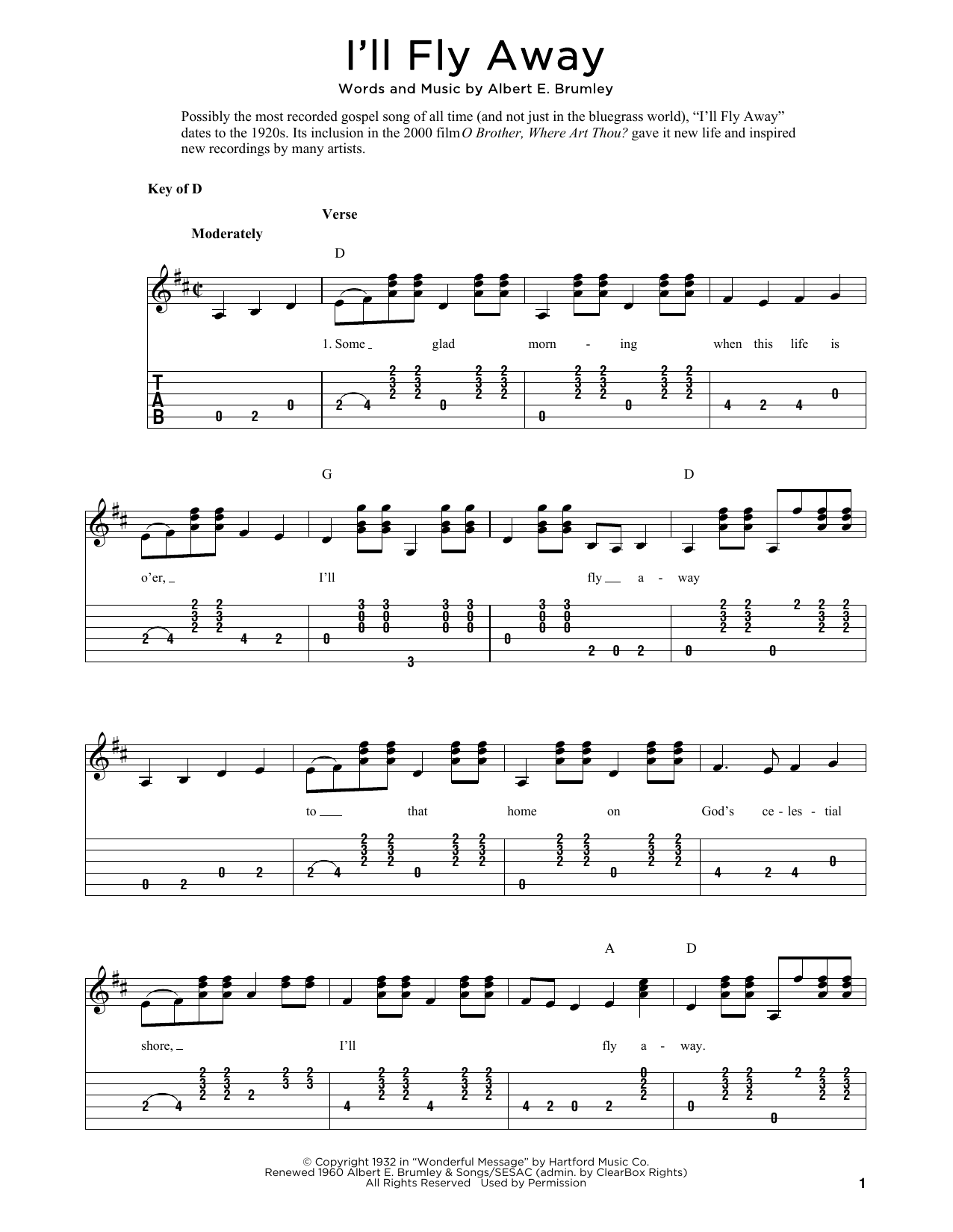 Download or print Albert E. Brumley I'll Fly Away (arr. Fred Sokolow) sheet music, chords and digital score arranged for Easy Guitar. This Gospel score includes 1 page(s).