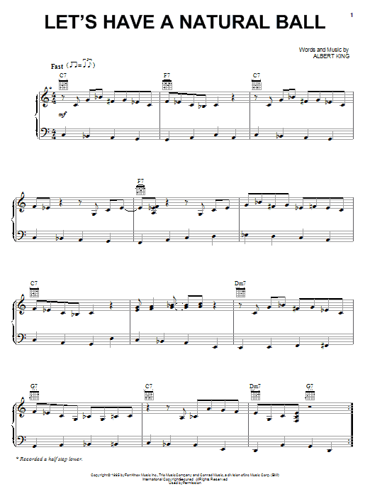 Download or print Albert King Let's Have A Natural Ball sheet music, chords and digital score arranged for Piano, Vocal & Guitar Chords (Right-Hand Melody). This Blues score includes 5 page(s).
