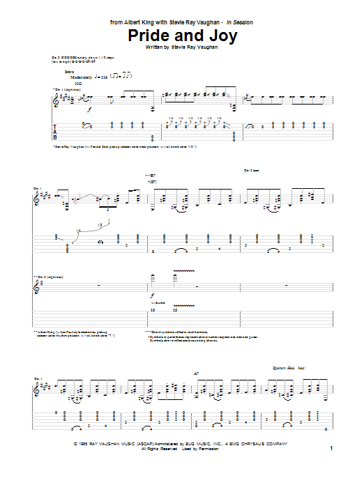 Download or print Albert King & Stevie Ray Vaughan Pride And Joy sheet music, chords and digital score arranged for Guitar Tab. This Pop score includes 18 page(s).