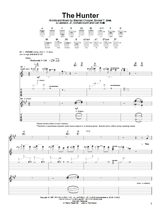 Download or print Albert King The Hunter sheet music, chords and digital score arranged for Guitar Tab. This Blues score includes 7 page(s).