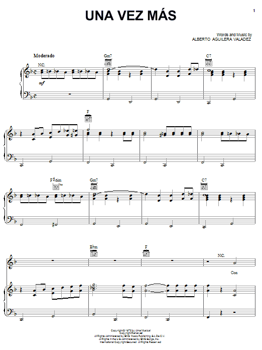 Download or print Alberto Aguilera Valadez Una Vez Mas sheet music, chords and digital score arranged for Piano, Vocal & Guitar Chords (Right-Hand Melody). This Latin score includes 8 page(s).
