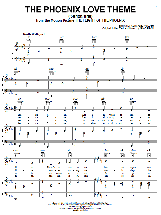 Quick facts The Phoenix Love Theme (Senza Fine) about digital sheet music