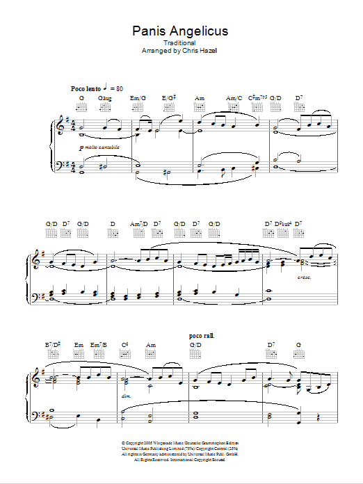 Download or print Aled Jones & Bryn Terfel Panis Angelicus sheet music, chords and digital score arranged for Piano, Vocal & Guitar Chords. This Classical score includes 5 page(s).
