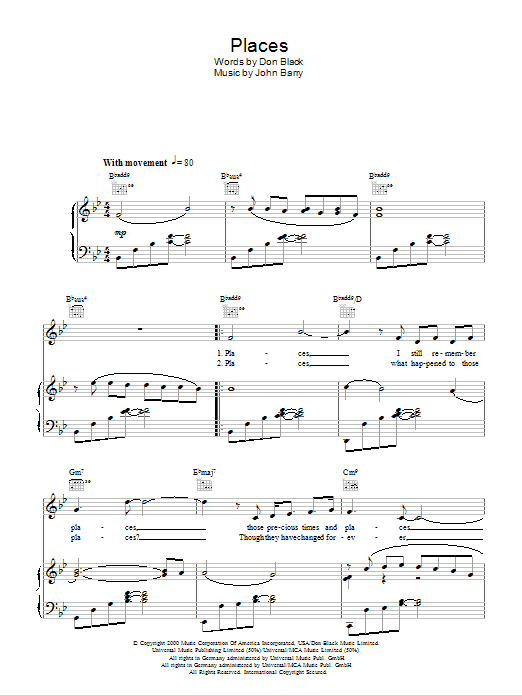 Download or print Aled Jones Places sheet music, chords and digital score arranged for Piano, Vocal & Guitar Chords. This Classical score includes 4 page(s).