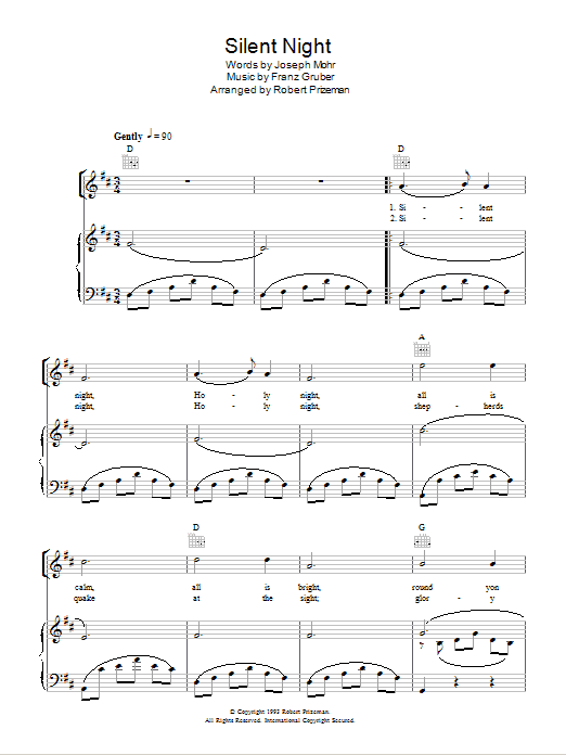 Download or print Aled Jones Silent Night sheet music, chords and digital score arranged for Piano, Vocal & Guitar Chords. This Christmas score includes 5 page(s).