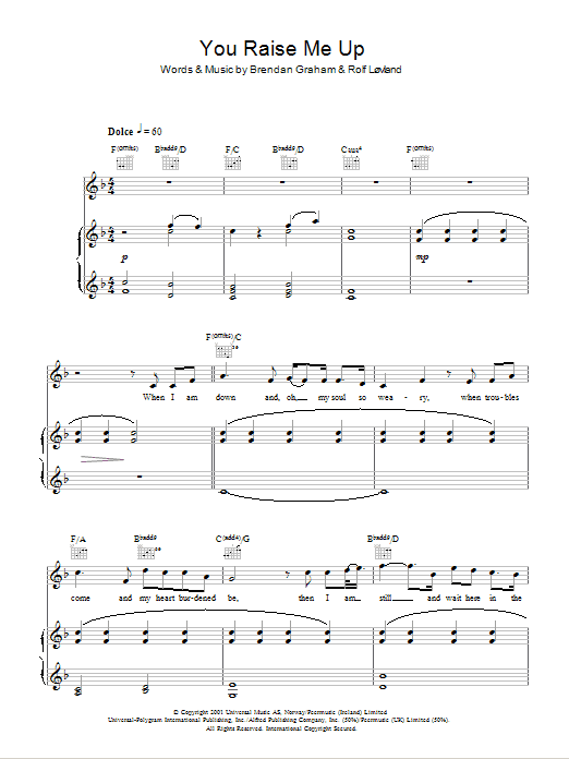 Quick facts You Raise Me Up about digital sheet music