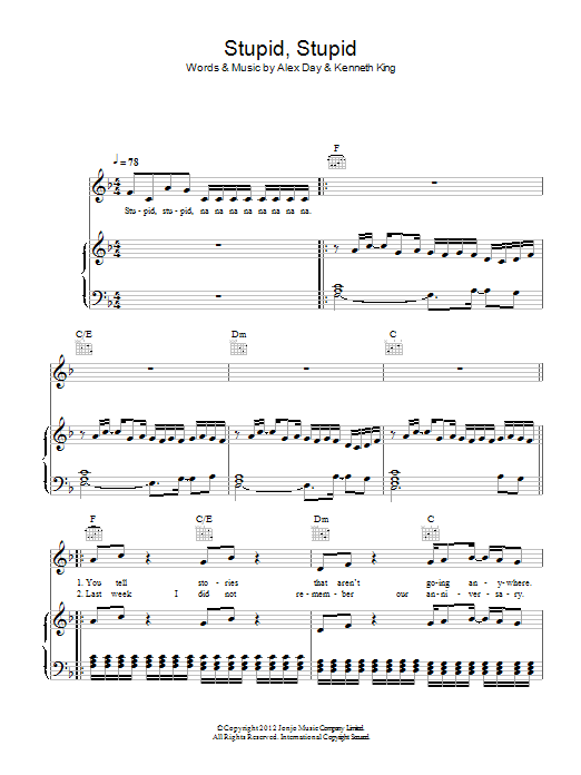 Download or print Alex Day Stupid Stupid sheet music, chords and digital score arranged for Piano, Vocal & Guitar Chords. This Pop score includes 4 page(s).