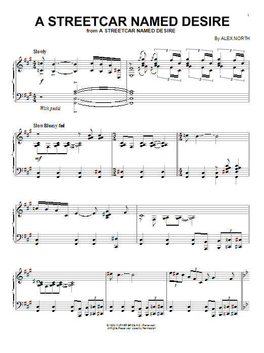 Download or print Alex North A Streetcar Named Desire sheet music, chords and digital score arranged for Piano Solo. This Pop score includes 2 page(s).