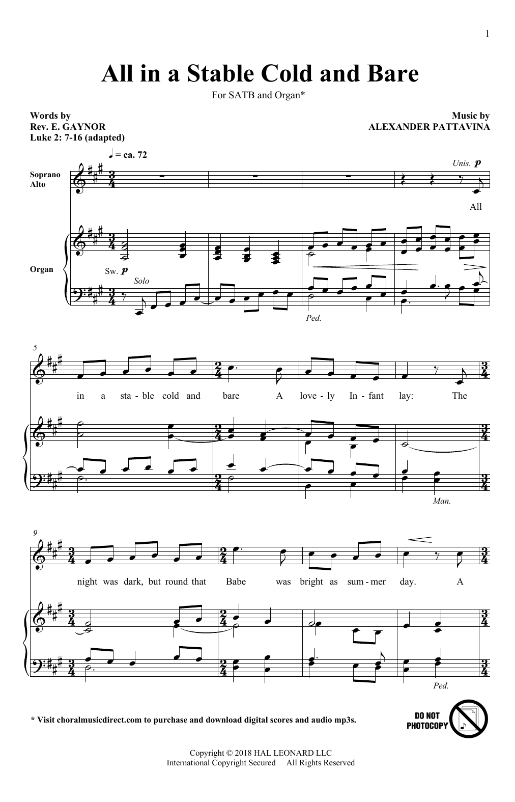 Download or print Alexander Pattavina All In A Stable Cold And Bare sheet music, chords and digital score arranged for SATB Choir. This Christmas score includes 9 page(s).