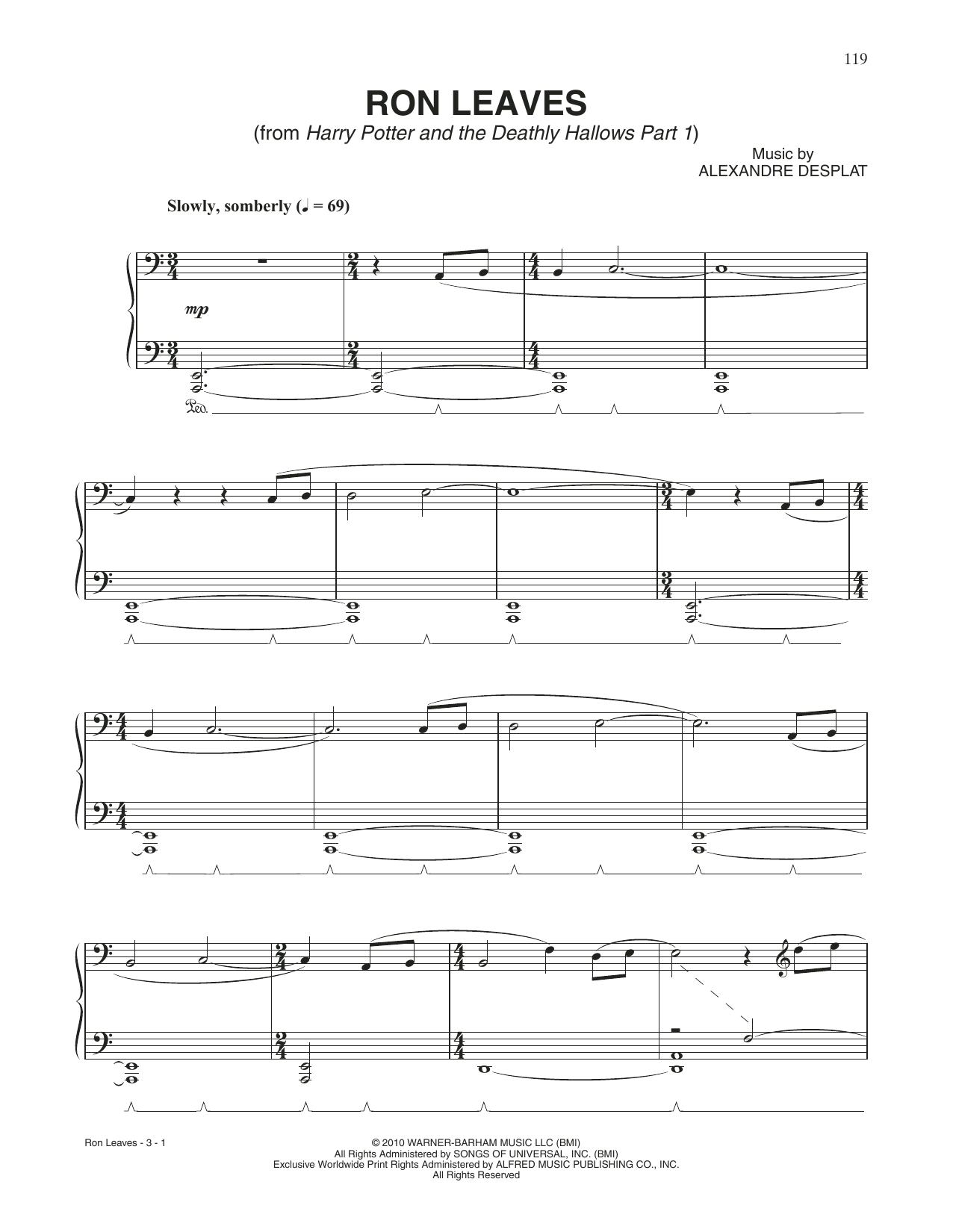 Download or print Alexandre Desplat Ron Leaves (from Harry Potter And The Deathly Gallows, Pt. 1) sheet music, chords and digital score arranged for Piano Solo. This Film/TV score includes 3 page(s).